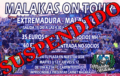 Y es que Malaka Hinchas ha tenido que cancelar el viaje que tenían organizado. "Quedan lejos esos años en los que, con dos autobuses, aún faltaban plazas para viajar. A día de hoy, falta gente para llenar un autobús, así que nos vemos en la obligación de suspender nuestro desplazamiento a Almendralejo. El malaguismo está de bajón", publicaron a través de Twitter.