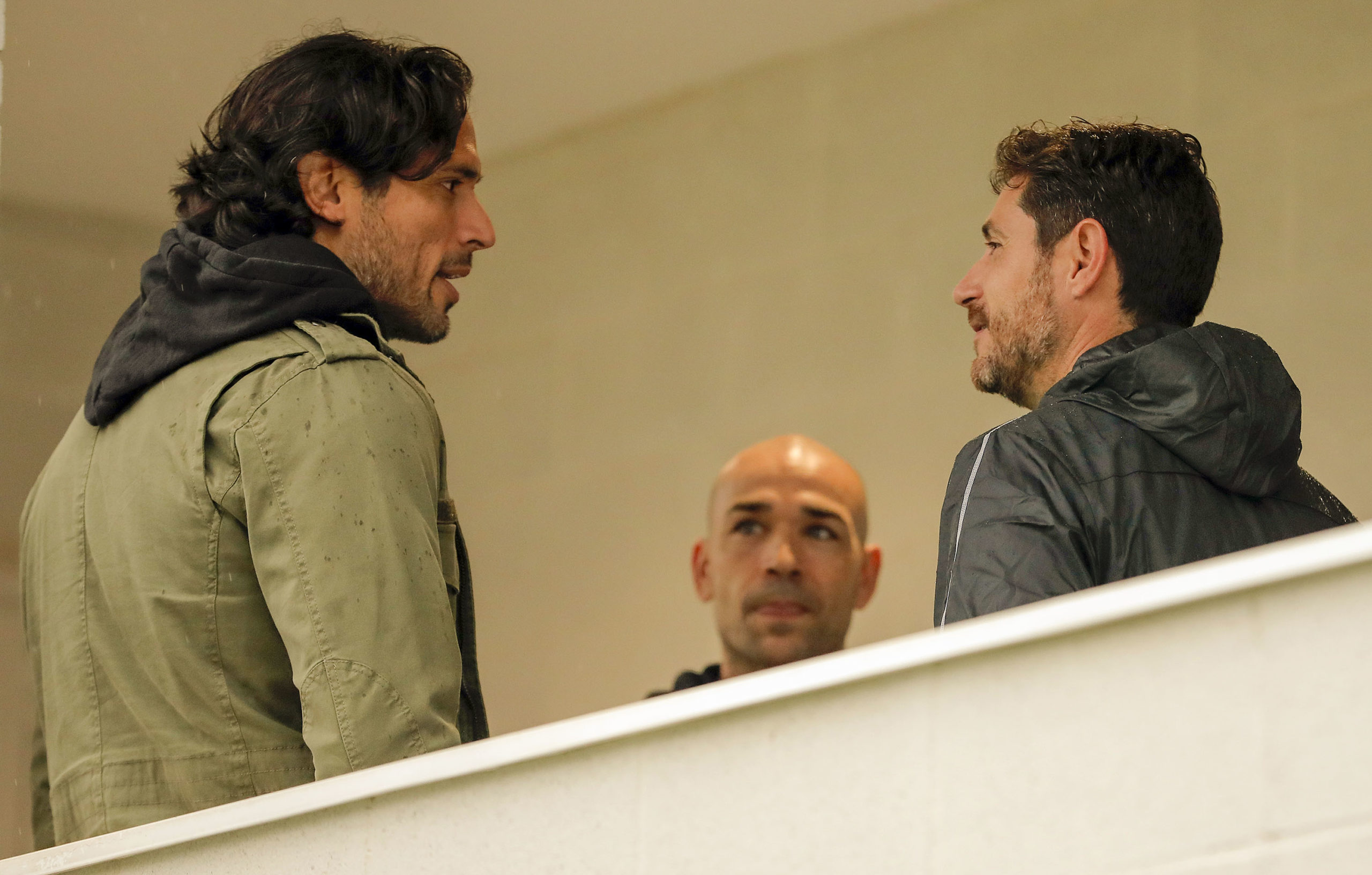 Roque Santa Cruz charla con Víctor y Manolo Gaspar en La Rosaleda || malagacf