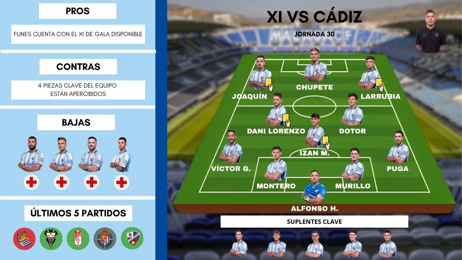 Este es el posible once del Málaga en el derbi ante el Cádiz