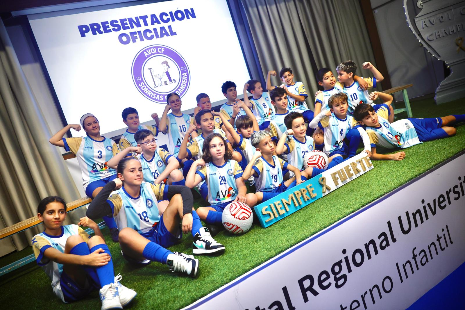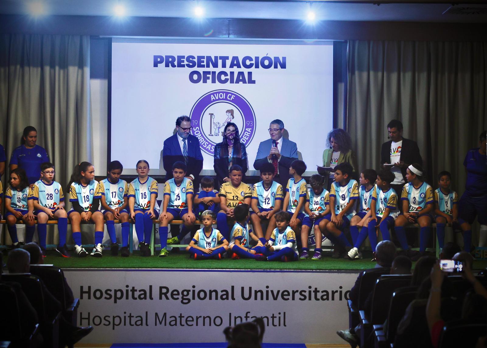 Después de los torneos de oncofútbol organizados en años anteriores, AVOI ha constituido AVOI CF, el primer equipo de fútbol de España de niños y niñas en tratamiento o seguimiento onco-hematológico, que ya está dado de alta en la Real Federación Andaluza de Fútbol y que ha sido presentado esta tarde en el Hospital Materno Infantil de Málaga. AVOI ha presentado esta tarde a su equipo, AVOI CF, un conjunto de fútbol compuesto por 21 jugadores, de entre 6 y 14 años, que se encuentran en tratamiento o seguimiento oncohematológico. Y lo hizo con una destacada puesta en escena en el salón de actos del Materno Infantil, con césped artificial sobre el escenario, porterías, balones, lonas gigantescas con el nombre del equipo y ¡hasta una Champions! Una atmósfera especial para un equipo especial. La puesta de largo de AVOI CF no pasó desapercibida para la sociedad malagueña y en el Materno Infantil de Málaga se dieron cita Francisco Salado, presidente de la Diputación Provincial de Málaga; Toñi Ledesma, diputada de Ciudadanía y Equilibrio Territorial; Carlos Bautista, delegado de Consumo y Salud, así como Natalia Mena, subdirectora médica del Hospital Regional Universitario de Málaga. Miguel Bandera representó al Área de Deportes del Ayuntamiento de Málaga, mientras que Sebastián Cervantes, delegado de Entrenadores de Málaga, también asistió en representación de la Federación Malagueña de Fútbol. También destacó una importante presencia del Málaga CF, con Francisco Martín Aguilar, consejero consultivo, y Sebastián Fernández Reyes ‘Basti’ como máximo exponente de la Fundación Málaga CF.