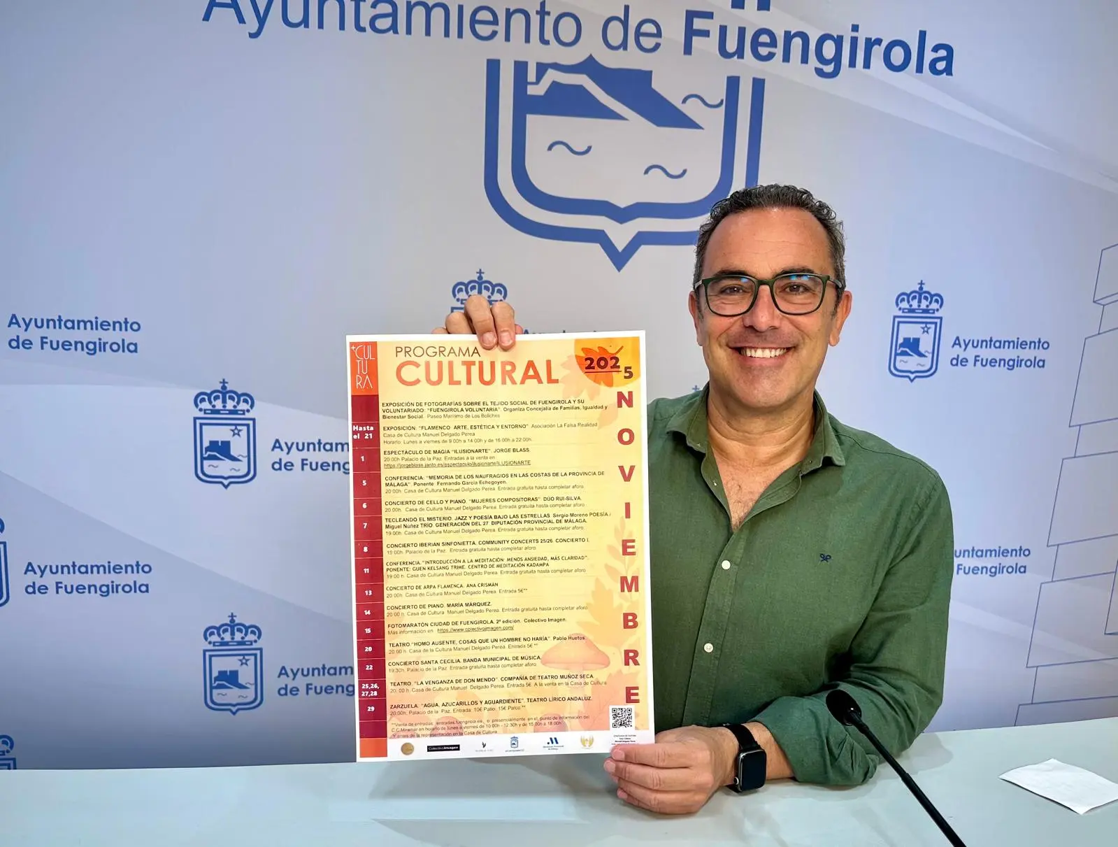 El Ayuntamiento de Fuengirola ha programado para el mes de noviembre una extensa programación cultural que incluye un total de quince actividades para todos los públicos. Así lo ha dado a conocer hoy el edil del área, Rodrigo Romero, quien ha destacado la variedad de las propuestas, que van desde conciertos y conferencias a exposiciones y obras de teatro.