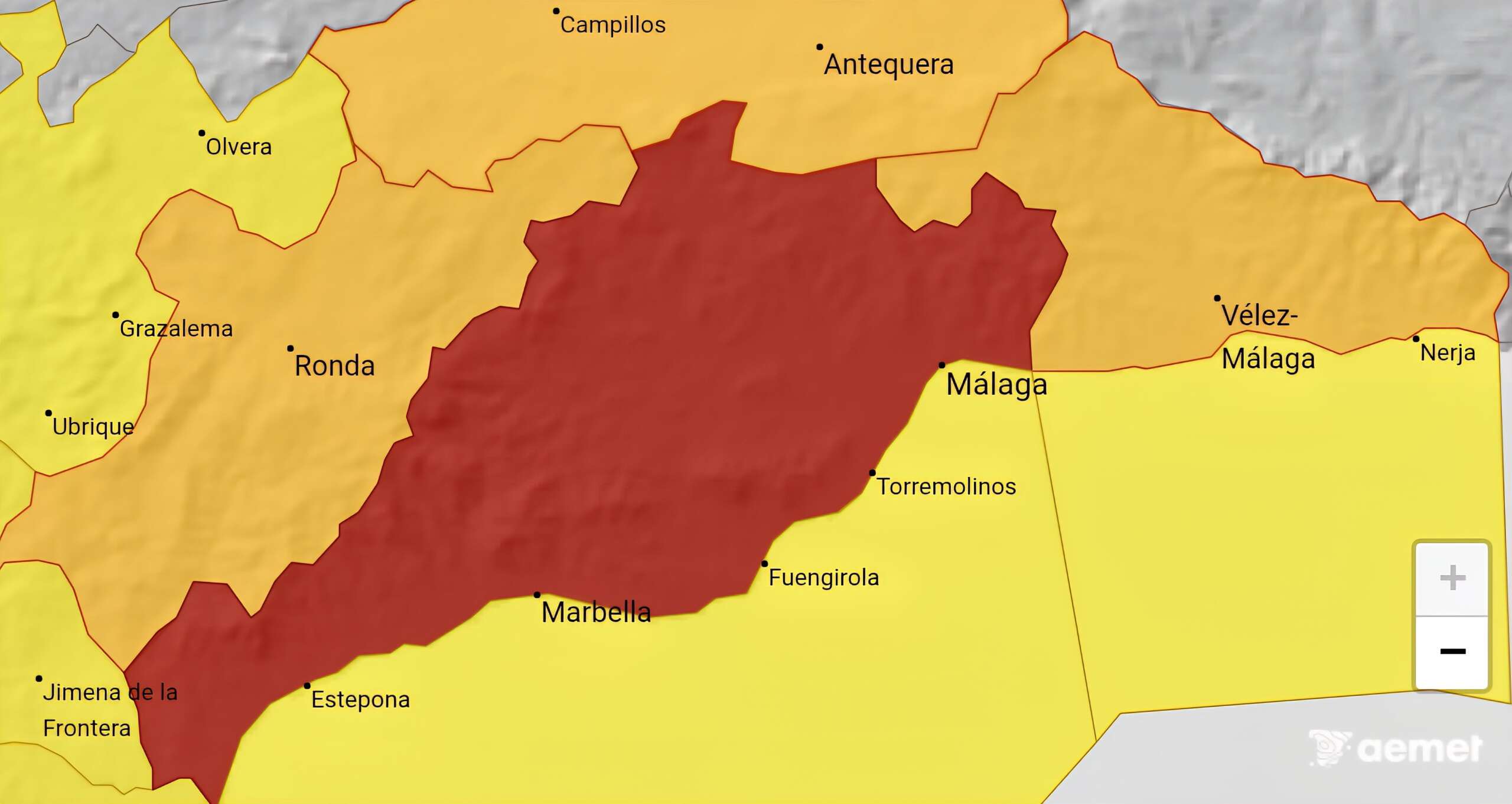 AEMET activa la alerta roja por lluvias intensas en la provincia de Málaga