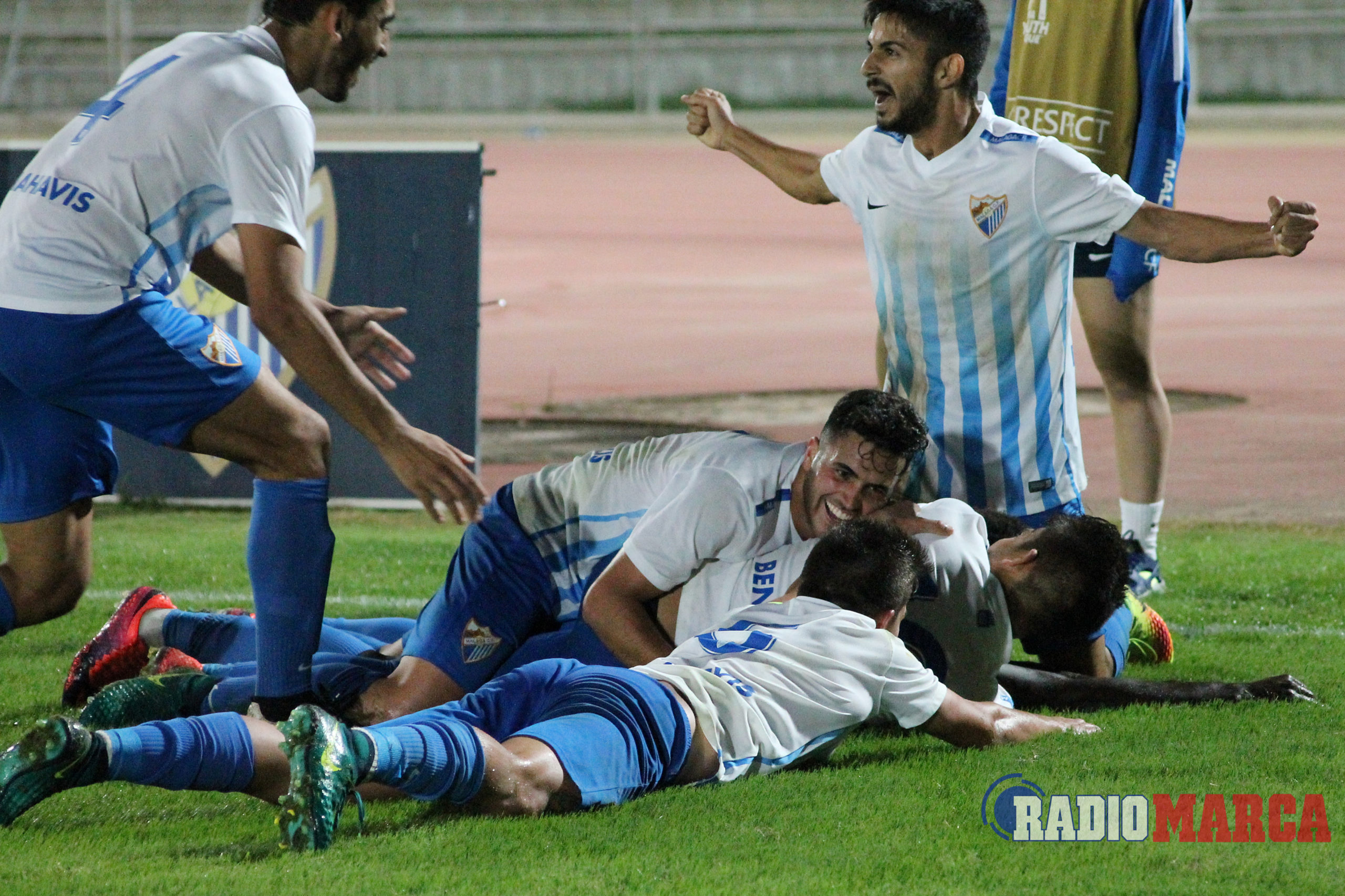 Los jugadores del Málaga juvenil celebran el último tanto de la tarde || Jenny Lozano