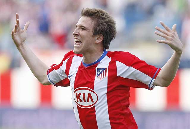 Un jovencísimo Camacho celebra un tanto con el Atlético de Madrid