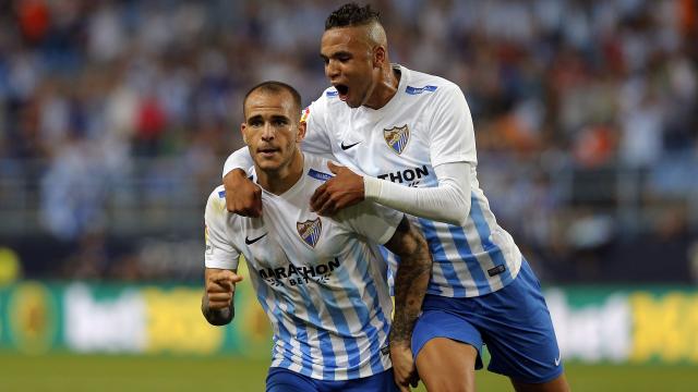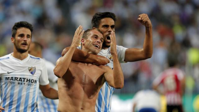 Duda celebra junto a Recio el tanto de la victoria del Málaga ante el Athletic || laliga.es