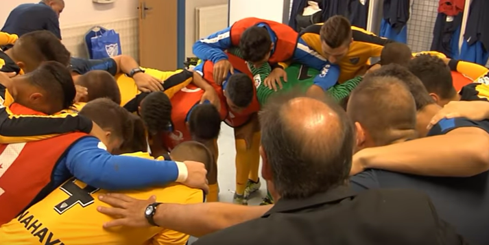 Los jugadores y el cuerpo técnico, haciendo piña antes del partido ante el Nitra