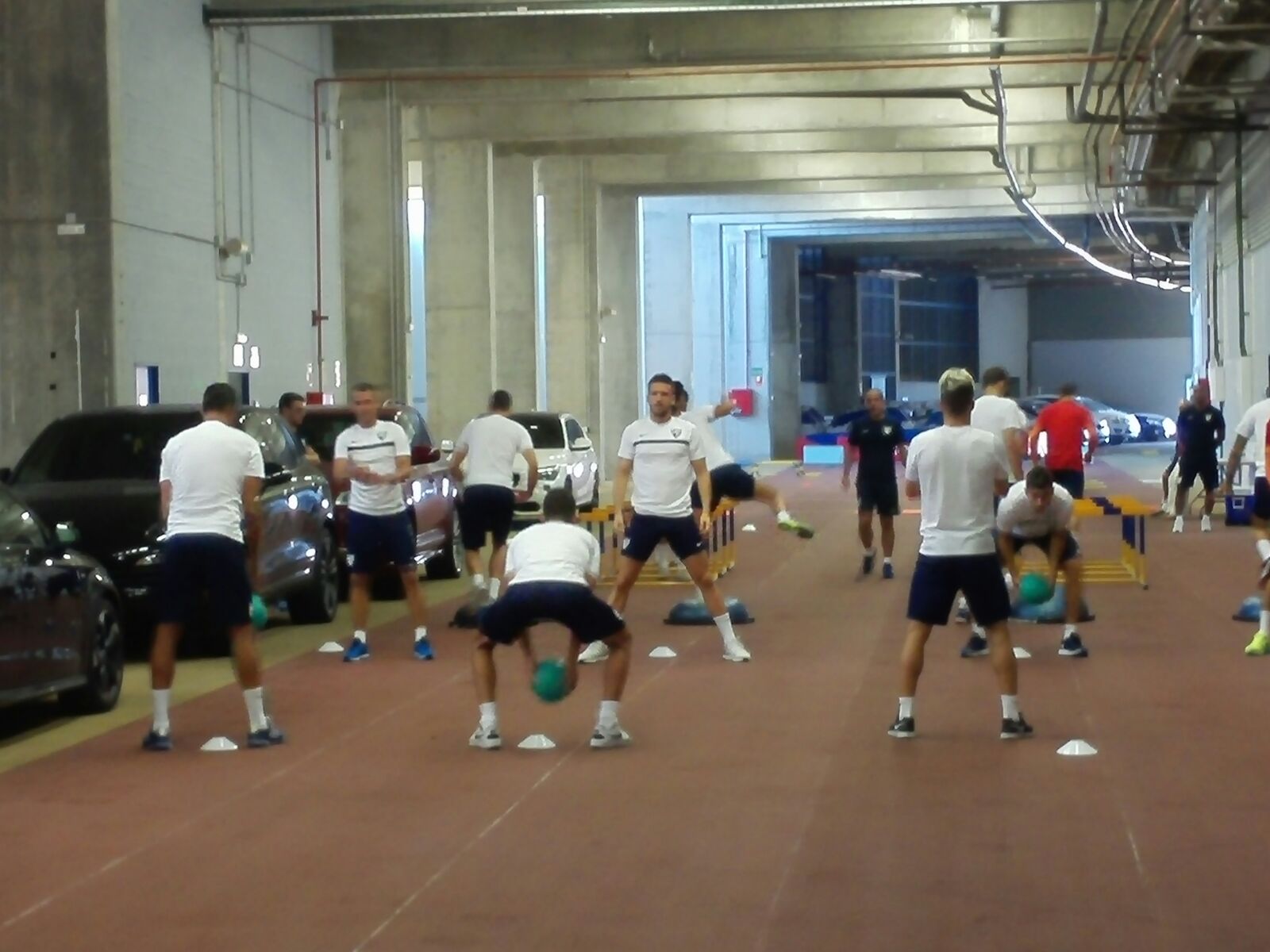Camacho, entrenando con el resto de compañeros en el interior del estadio