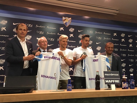 Francesc Arnau, en la última presentación de jugadores del Málaga, con Keko y Jony
