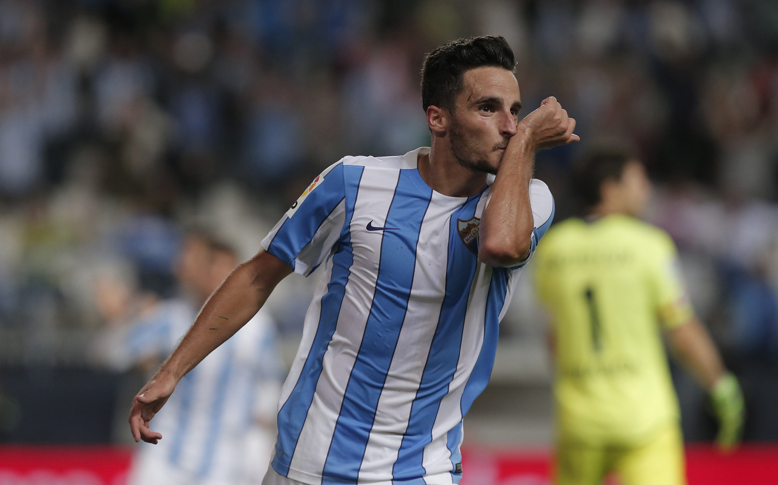 Juankar celebra un gol con el Málaga la pasada temporada