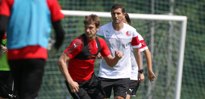 Javi Gracia, durante su primer entrenamiento con su nuevo equipo