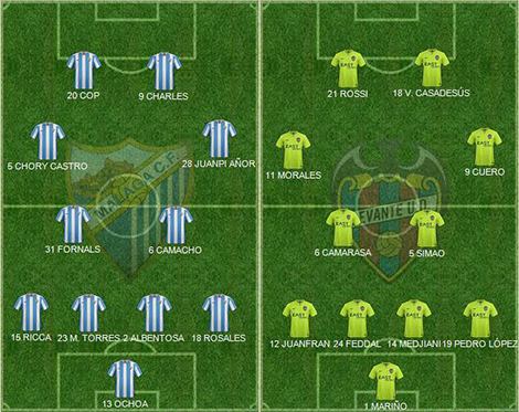 Alineaciones probables del Málaga-Levante en La Rosaleda
