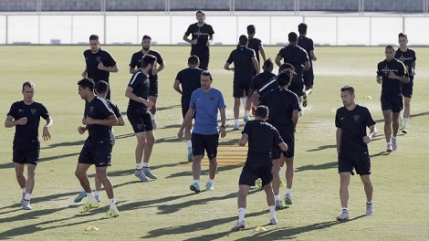 Los responsables de Bluebay, tras la presentación de su proyecto para el Málaga