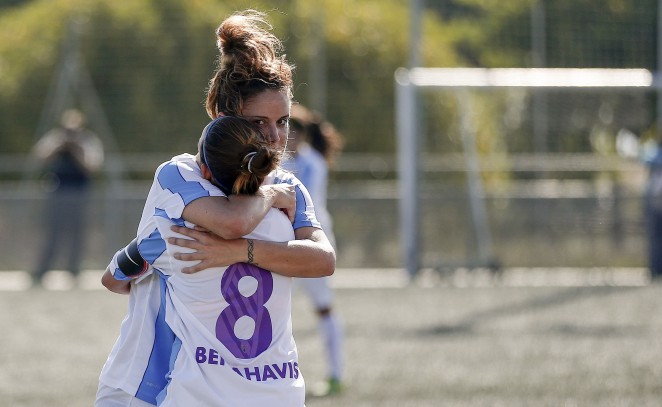 Las jugadoras del Málaga femenino quieren seguir celebrando goles ante el Betis
