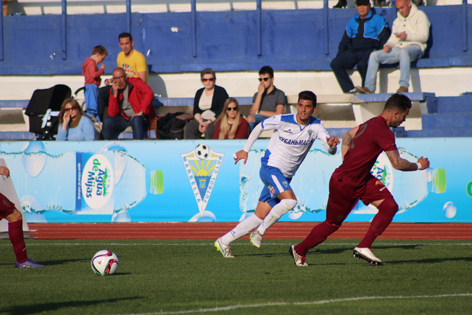 Álex Herrera intenta robar la pelota en un contragolpe del Jumilla