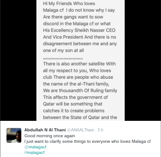 El mensaje de Al Thani, otra vez a través de las redes sociales