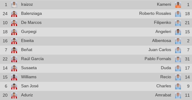 Alineaciones oficiales del Athletic-Málaga