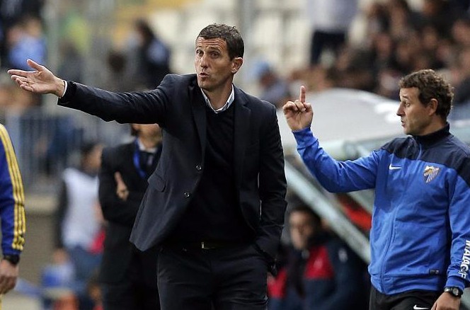Javi Gracia, dando instrucciones durante el partido, estaba abatido al final
