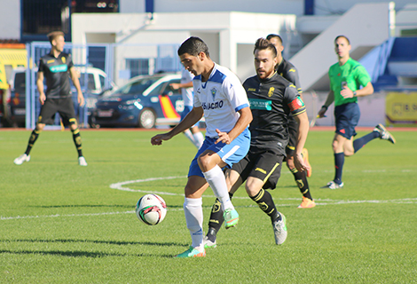Sergio Narváez controla un balón ante la presión de un rival granadino