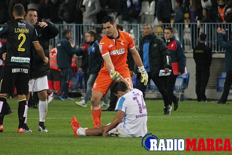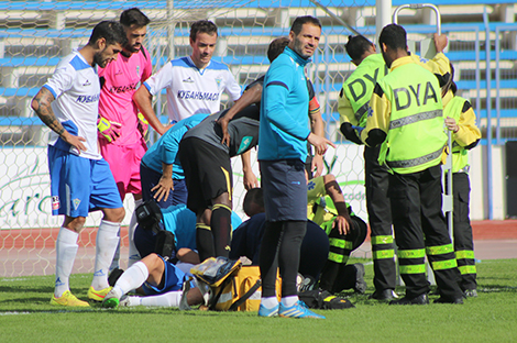 Gabi Ramos, siendo atendido tras el fuerte encontronazo con un rival
