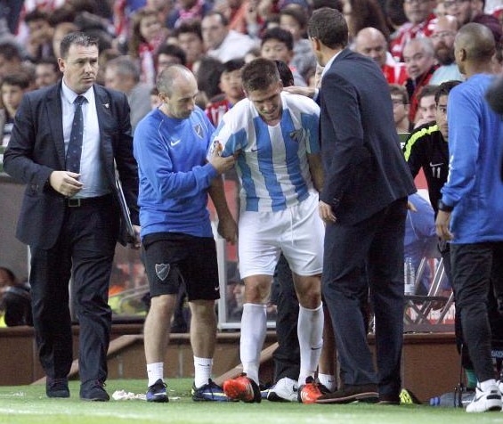 Camacho, en el momento de lesionarse en El Molinón || lfp.es