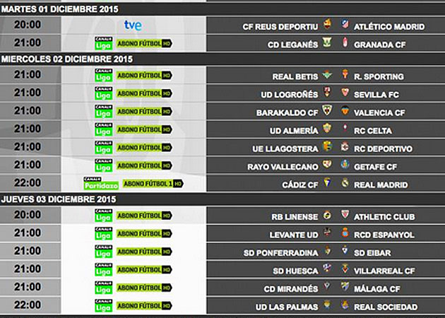Así queda el cuadro con los horarios definitivos de la ida de los 1/16 de Copa