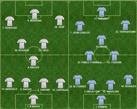 Los jugadores del Málaga saludan tras lograr el empate en el Bernabeu || lfp.es