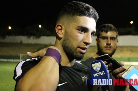 Adnane Tighadouini atendiendo a los medios al final del partido // Jennifer Lozano