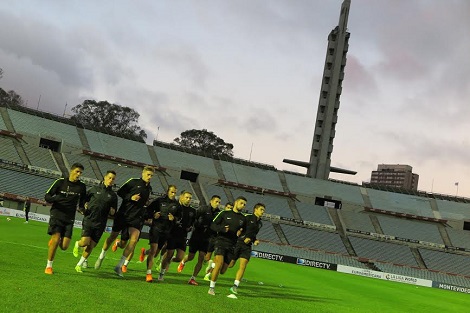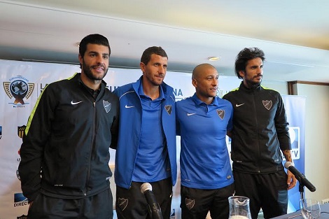 Jugadores de Peñarol y Málaga previo al partido // Málaga CF