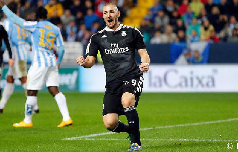 Benzema, celebrando el tanto que marcó en La Rosaleda en la primera vuelta || realmadrid.com