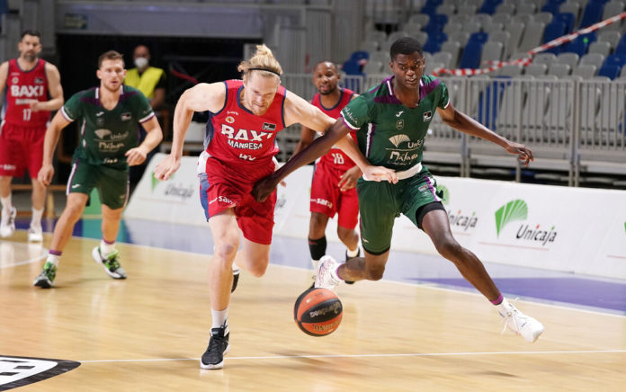 Nzosa lucha por un balón dividido en el Unicaja-Manresa || foto: ACBPhoto/M.Pozo