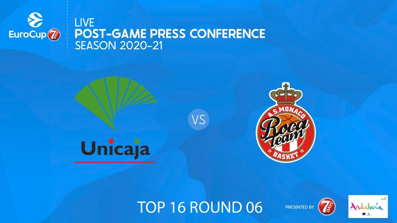 La rueda de prensa de los protagonistas del Unicaja-Mónaco, último partido del Top16 de la Eurocup.
