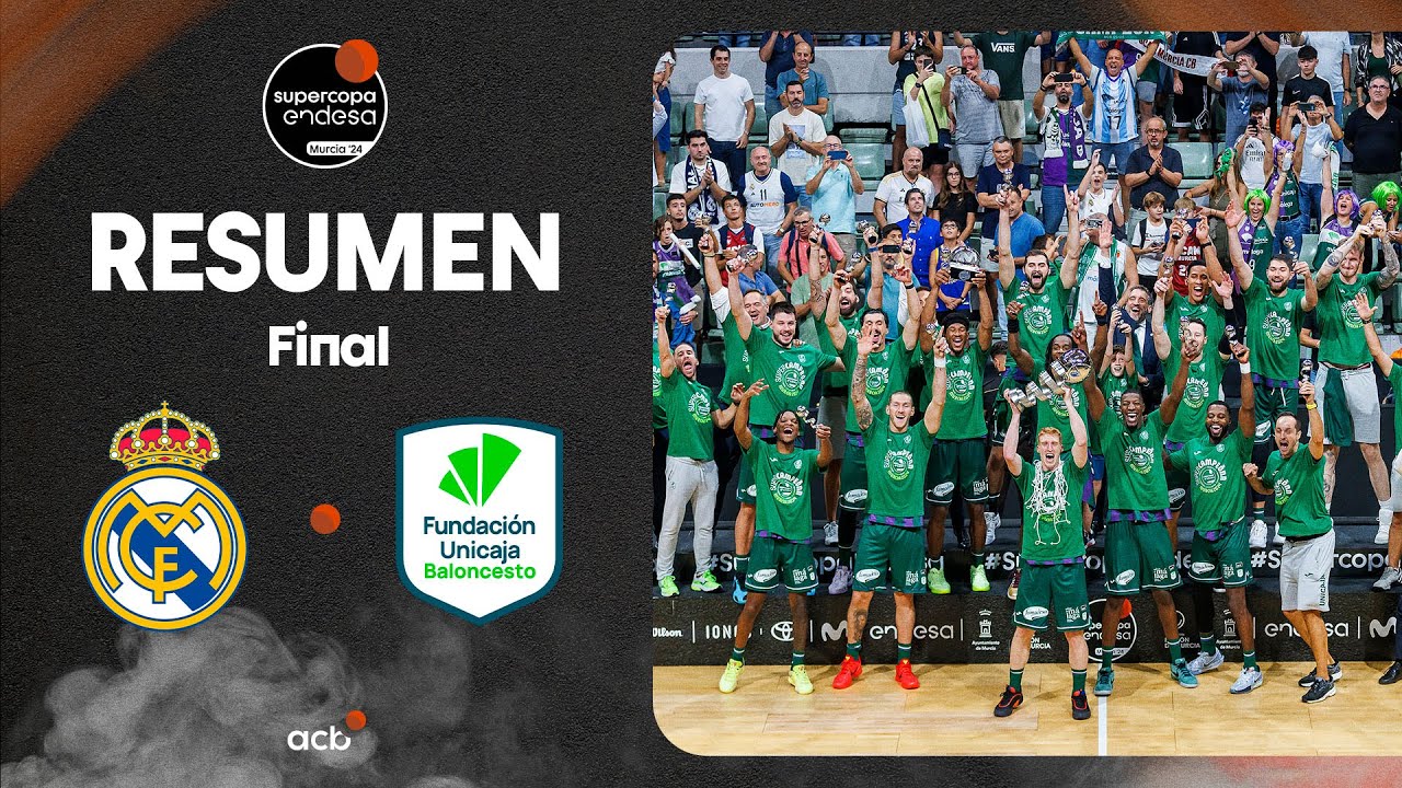 Repasa aquí el resumen y las mejores jugadas de la final de la Supercopa Endesa entre Unicaja y Real Madrid. Un partido en el que los de Ibon Navarro realizaron una espectacular actuación para terminar alzando el título.