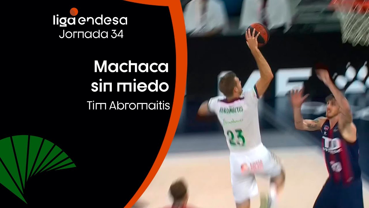 El estadounidense penetra con mucha potencia desde la línea de tres y hunde el balón, saltando desde lejos, para marcar terreno en ataque. A Tim Abromaitis no le da ningún miedo la posible oposición de Polonara y ¡completa un matazo!