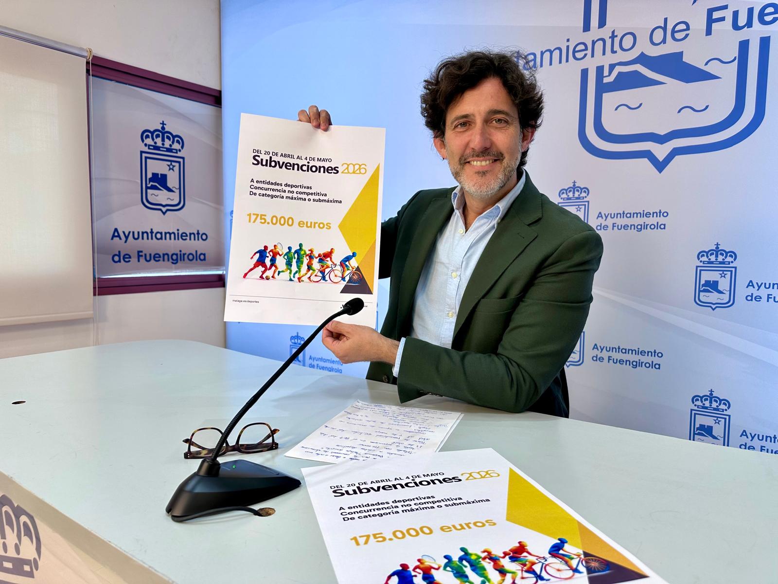 El Ayuntamiento de Fuengirola anima a los clubes deportivos de la ciudad a que soliciten las subvenciones de la Diputación Provincial de Málaga en materia de Deportes. Así lo ha manifestado el diputado provincial y concejal en el Consistorio fuengiroleño, Francisco José Martín, quien ha explicado que el ente supramunicipal ha abierto una línea de ayudas por valor de 175.000 euros que estará activa hasta el 4 de mayo.
