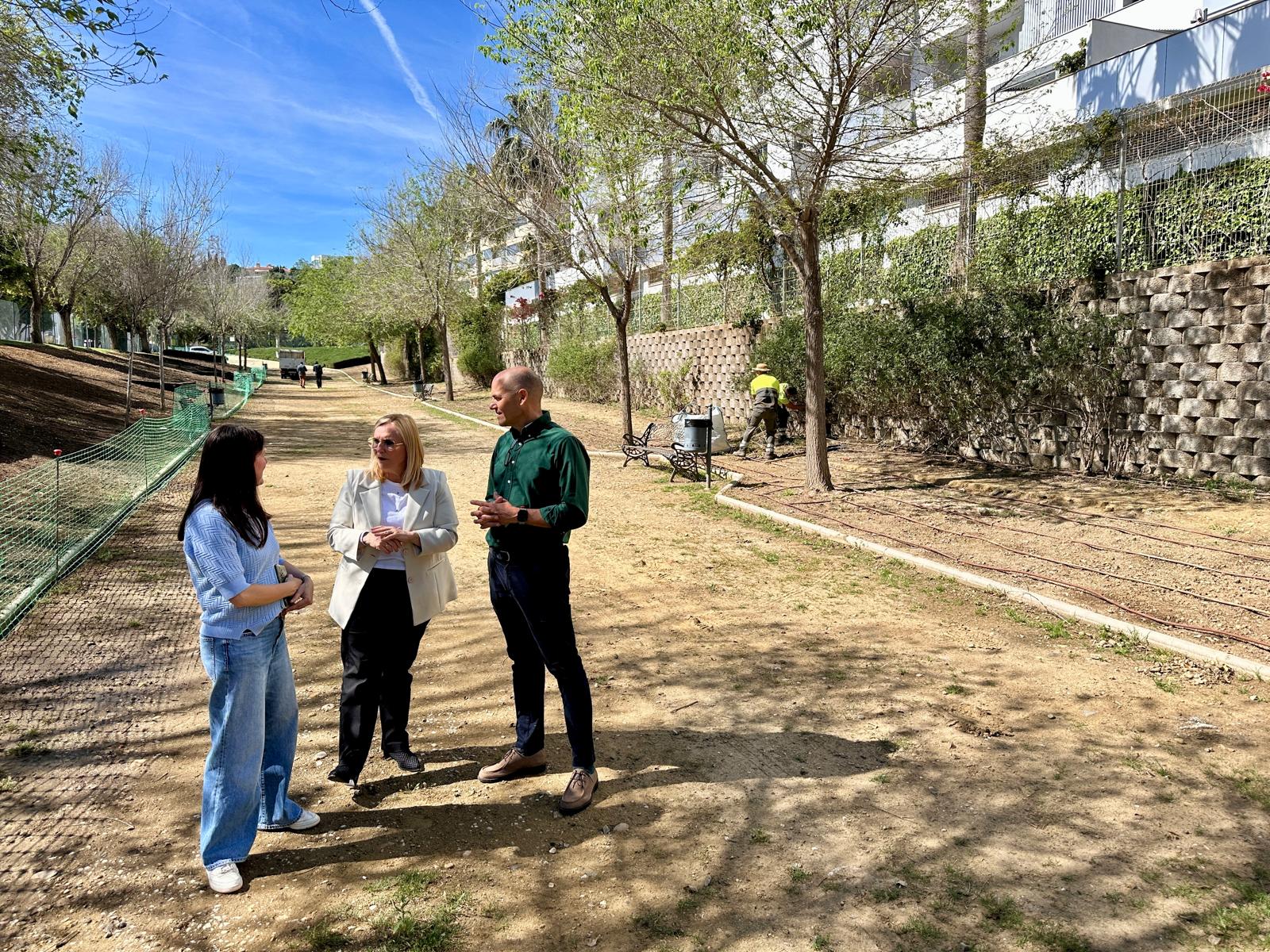 El Ayuntamiento de Fuengirola está renovando el Parque Aromático de la zona de Miramar. La alcaldesa Ana Mula, junto con el concejal de Ecología Urbana, José Sánchez, ha visitado los trabajos de repoblación de este espacio verde, que cuenta con más de 2.000 metros cuadrados y unos 1.400 de ellos destinados a diferentes especies vegetales.