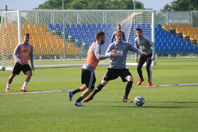 La plantilla trabajó al completo sobre el césped en una sesión bastante dinámica, en la que el balón fue protagonista mientras Álvaro Cervera trabajaba aspectos tácticos. También hubo, por supuesto, mucho trabajo físico a las órdenes de Miguel Ángel Campos.