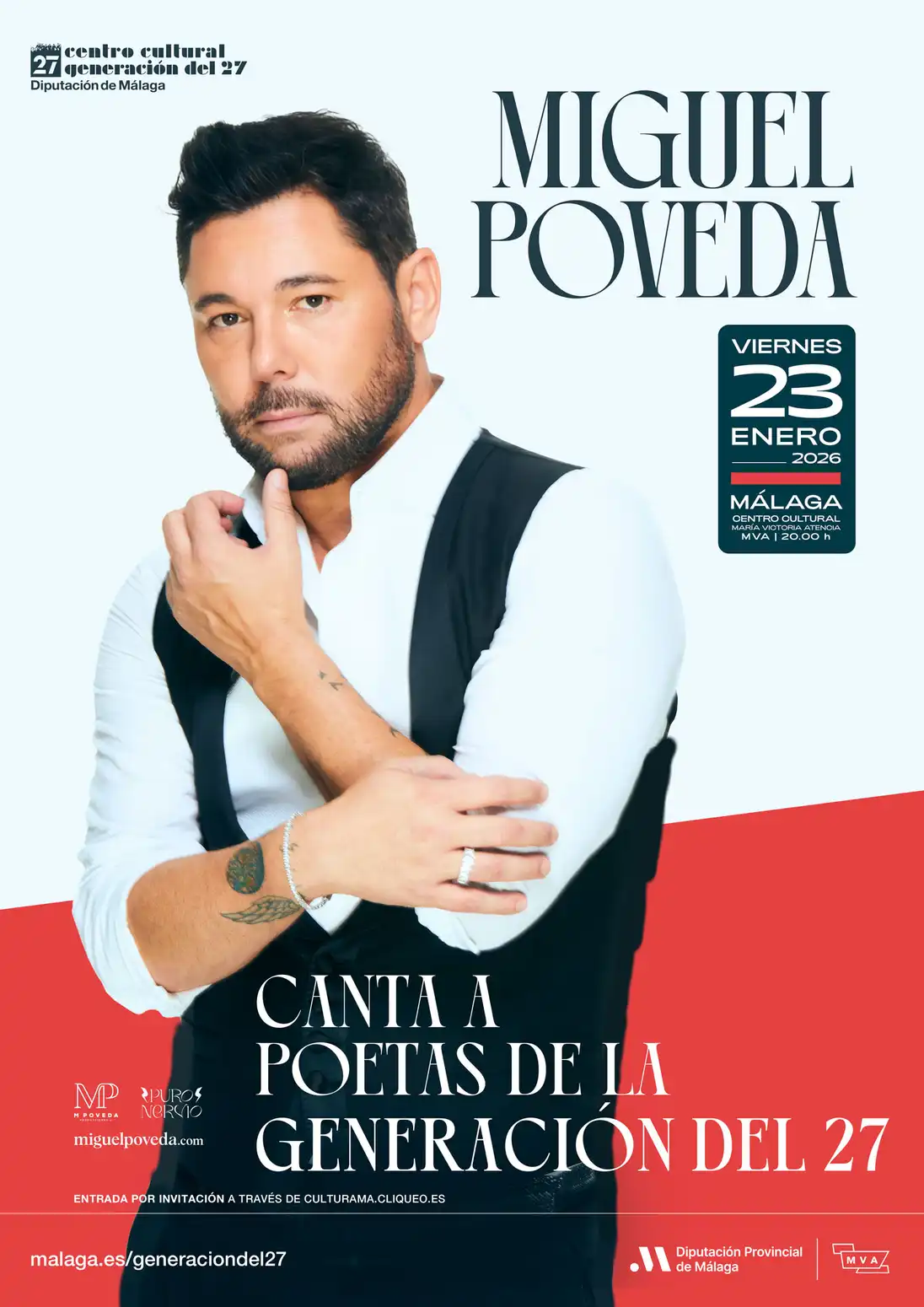 La Diputación de Málaga inicia los actos del centenario de la Generación del 27 con la actuación de Miguel Poveda este viernes en el MVA