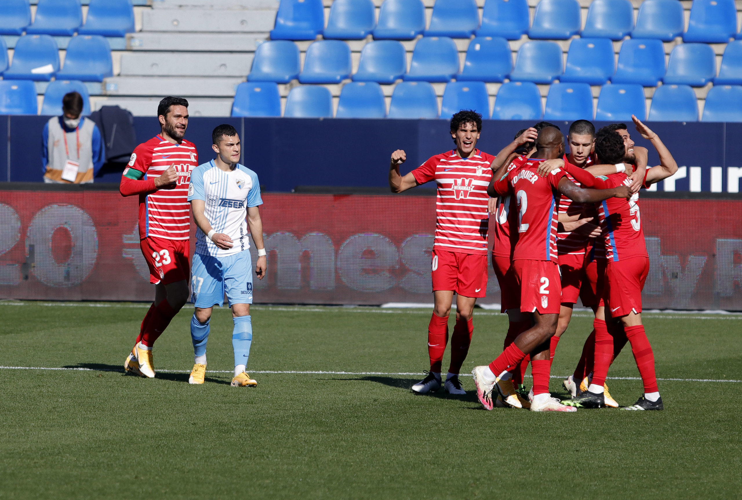 El guion fue el que se podía esperar en los primeros compases: el Granada enseñando su baraja dominando la posesión y el Málaga bien replegado en propio campo esperando al contragolpe. Poco a poco se fue asentando el conjunto de Pellicer, pero la diosa fortuna le sonrió al cuadro nazarí. Fede Vico botó una falta pegada al área que rebotó en el pie de Escassi y se fue a las mallas para poner el 0-1 en el marcador. Ante esto, los boquerones fueron a más, pero con el mismo problema de siempre: la falta de gol.