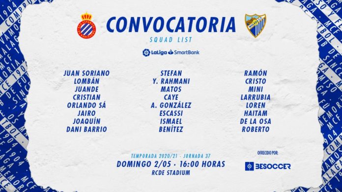 Sergio Pellicer ha dado a conocer la lista de convocados que viajarán esta misma tarde a Barcelona para medirse ante el Espanyol. En la citación del técnico de Nules no están los lesionados que se esperaban. Luis Muñoz, Mejías, Jozabed y Benkhemassa han causado baja para el duelo de este domingo en Cornellá. Pocas novedades después de una semana en la que el equipo ha estado más pendiente de la enfermería que de otra cosa. Una convocatoria en la que nuevamente se han colado muchos canteranos. No así Gonzalo y Alberto Quintana que ayudarán al Atlético Malagueño de Funes y Bravo en su partido contra el Torreperogil. Esta es la convocatoria para visitar al líder.