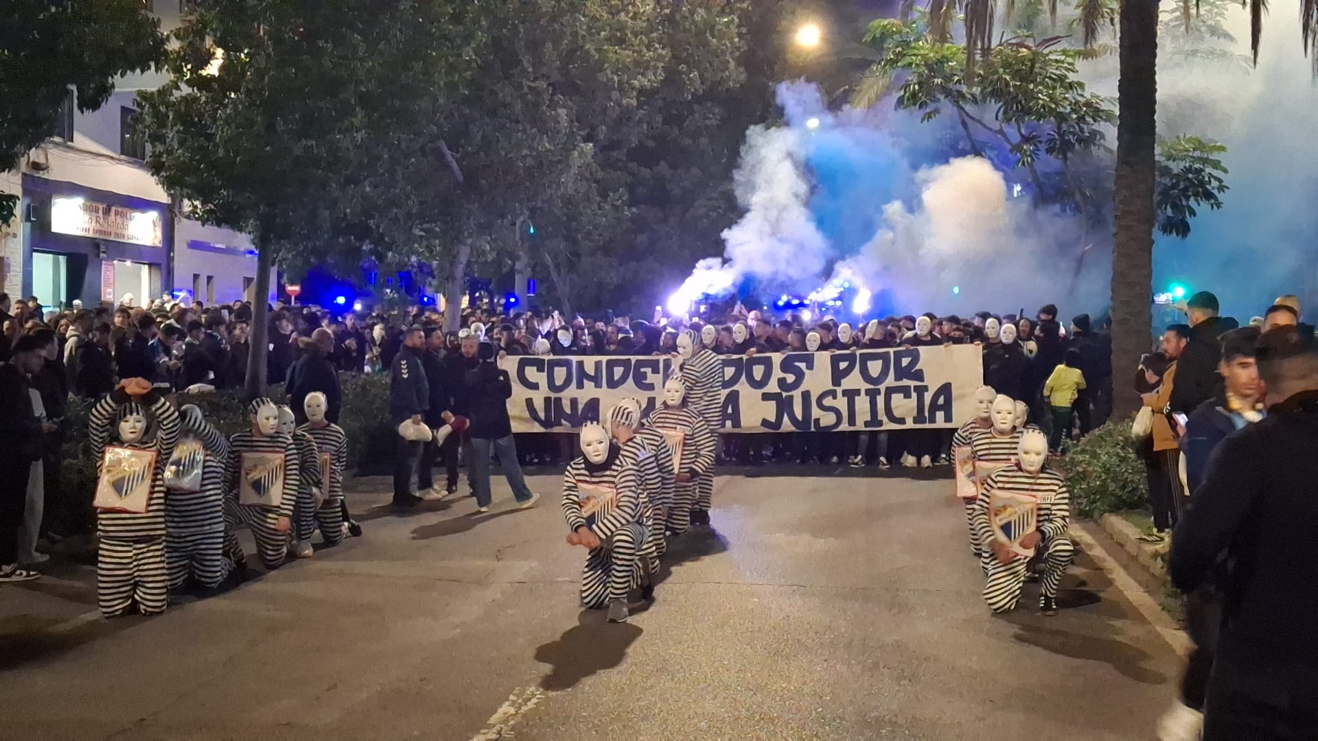 La noche comenzó calentita en las inmediaciones del estadio de La Rosaleda. El malaguismo está cada vez más cansado de la situación institucional del club de Martiricos y del administrador judicial. Es por eso que los seguidores malaguistas, con varias peñas a la cabeza, se han unido en una protesta que tuvo lugar en la previa del partido ante el Zaragoza. El malaguista medio empieza a estar desesperado.