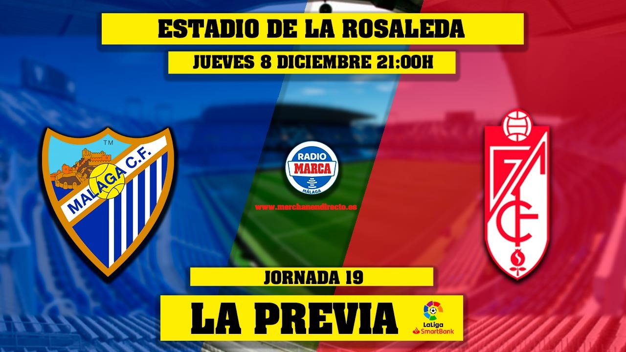 SIGUE EN DIRECTO ESTE MÁLAGA-GRANADA CON LA PREVIA A PARTIR DE LAS 20:30 EN EL 96.8 FM O BIEN A TRAVÉS DE LAS APLICACIONES DE RADIO MARCA MÁLAGA DISPONIBLES PARA DISPOSITIVOS MÓVILES EN WWW.MERCHANENDIRECTO.ES. TODO ELLO CON LAS VOCES DE JUANJE FERNÁNDEZ, JORGE CABRERA, PEDRO JIMÉNEZ Y JUANITO.