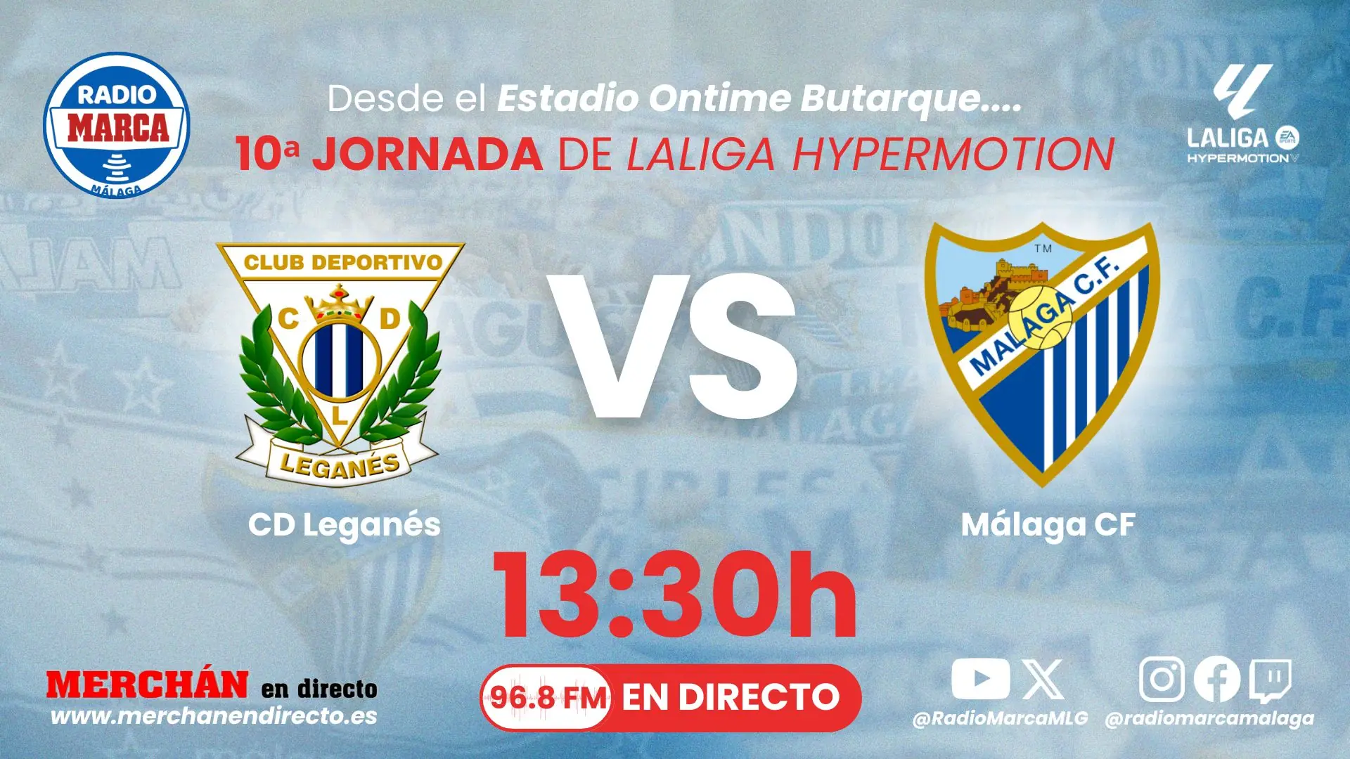 Desde las 14:00h, media hora antes con la mejor previa en Radio MARCA Málaga, vive el duelo entre el Leganés y el Málaga CF correspondiente a la Jornada 10 de LaLiga Hypermotion.