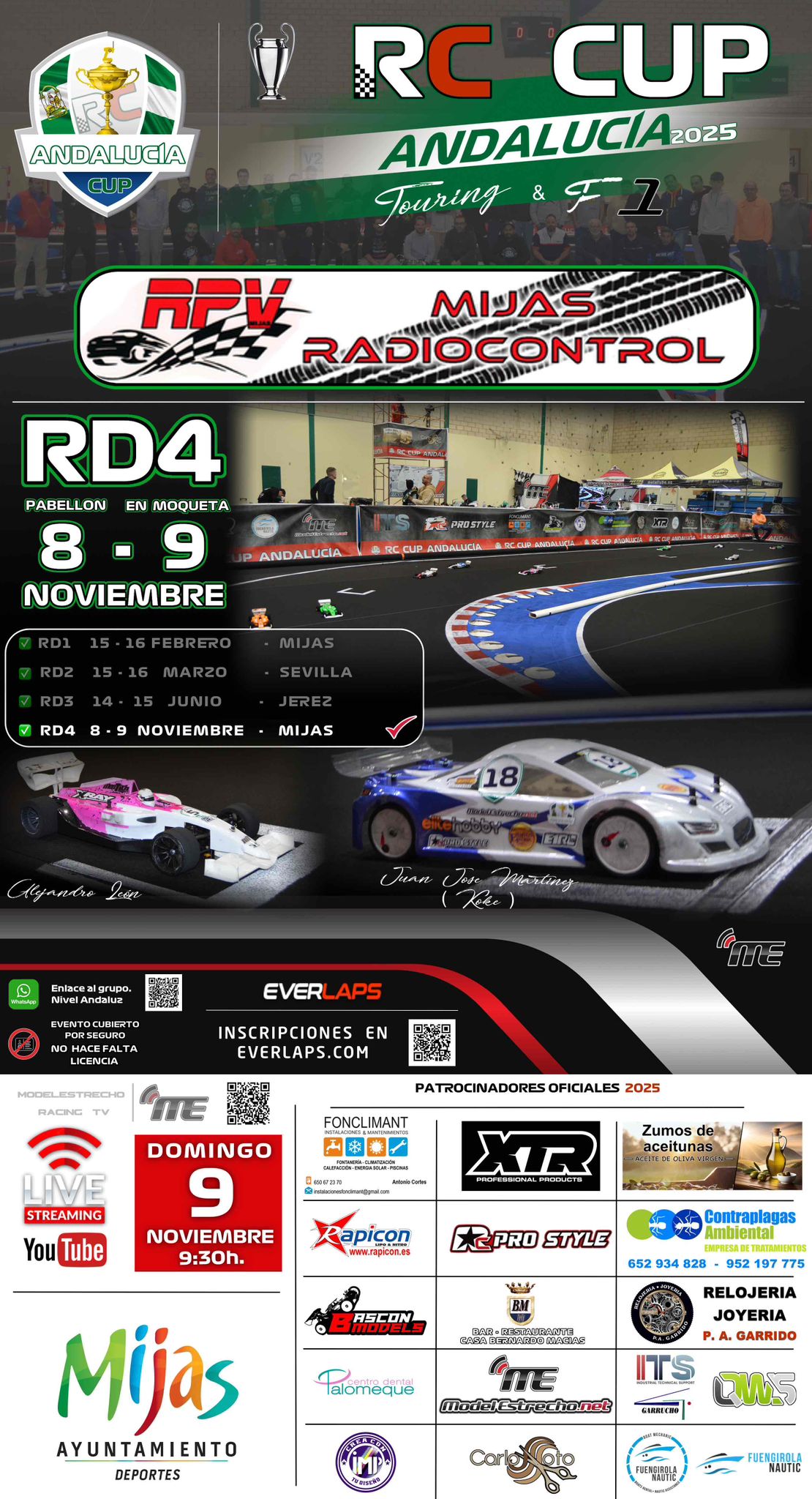 La RC Cup Andalucía se disputará en el pabellón de Osunillas durante este sábado y domingo. Organizado por el Club de Radiocontrol de Mijas, hay 40 participantes inscritos de los que doce son mijeños. Se trata de una competición en dos categorías, Touring y F1, y correrán sobre moqueta.