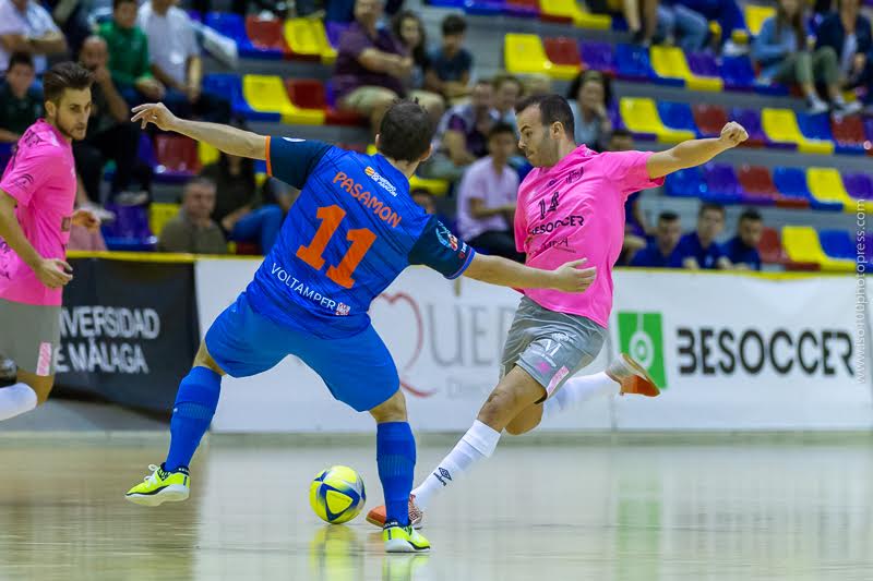 Una representación de este grupo de guerreras saltó a la pista mientras los jugadores de ambos conjuntos le hicieron un pasillo con aplausos y además recibieron la ovación del público. Pedro Montiel, presidente de la entidad, regaló al colectivo una camiseta rosa firmada por todos los miembros del plantel dirigido por Manuel Luiggi Carrasco “Moli” que sortearán en la próxima Navidad junto a otras actividades para recoger fondos. Un partido marcado por las acciones de estrategia. Desde los primeros instantes empezó a funcionar lo indicado a balón parado por los entrenadores en sus pizarras en la previa del choque. En el minuto 2, Dani Ramos sacó de esquina y Álex Fuentes fusiló la portería (1-0). Un formidable disparo que otorgó una ventaja que pudo ser ampliada poco después. El autor del primer tanto avanzó con clase por banda hasta dejar solo a Nacho Caballero.