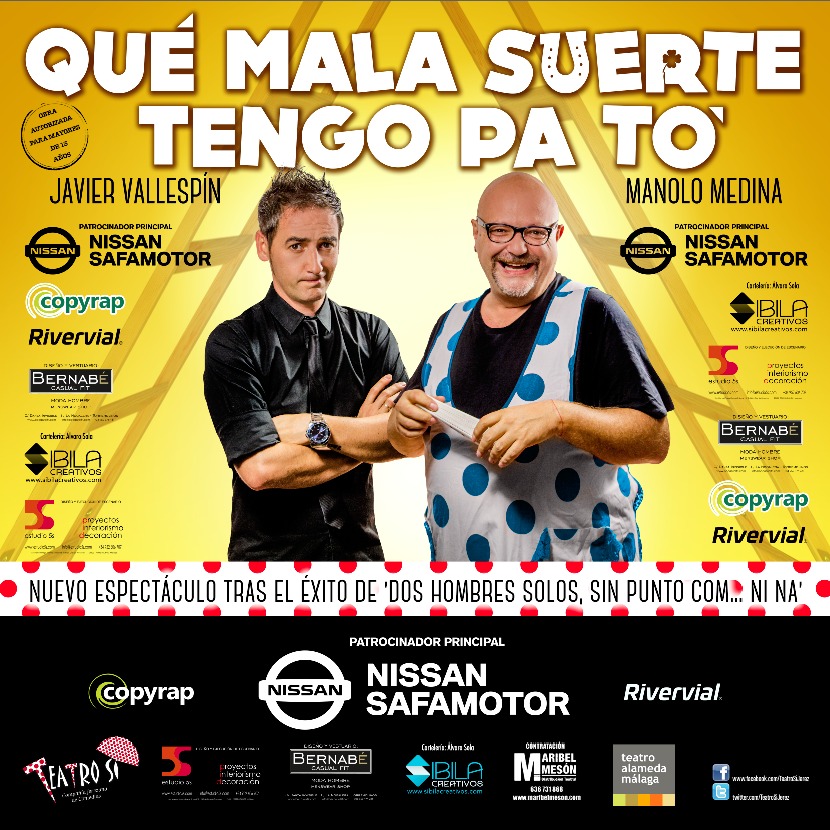 @RadioMarcaMLG | Manolo Medina y Javier Vallespín regresan a los escenarios para seguir deleitando a los espectadores con su espectacular sentido del humor. Tras el gran éxito que durante años supuso 'Dos hombres solos sin punto com ni ná', este jueves vuelven al teatro Alameda para estrenar 'Qué mala suerte tengo pa tó'.