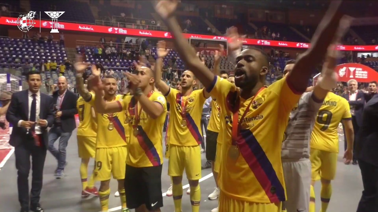 Sobre la pista, con su afición y al ritmo de la música. ¡Así ha sido la espectacular celebración del Barça tras revalidar el título de campeón!
