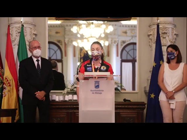 El alcalde de Málaga, Francisco de la Torre, le ha entregado el escudo de la ciudad a las jugadoras, así como a los técnicos y dirigentes del Rincón Fertilidad, acompañado por la concejala de Deporte, Noelia Losada.
