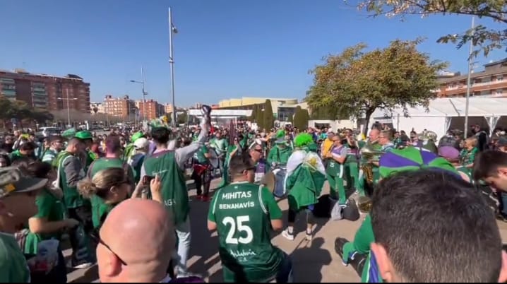 Los seguidores del conjunto malagueño están haciéndose notar en Badalona para animar al equipo cajista en una cita histórica.