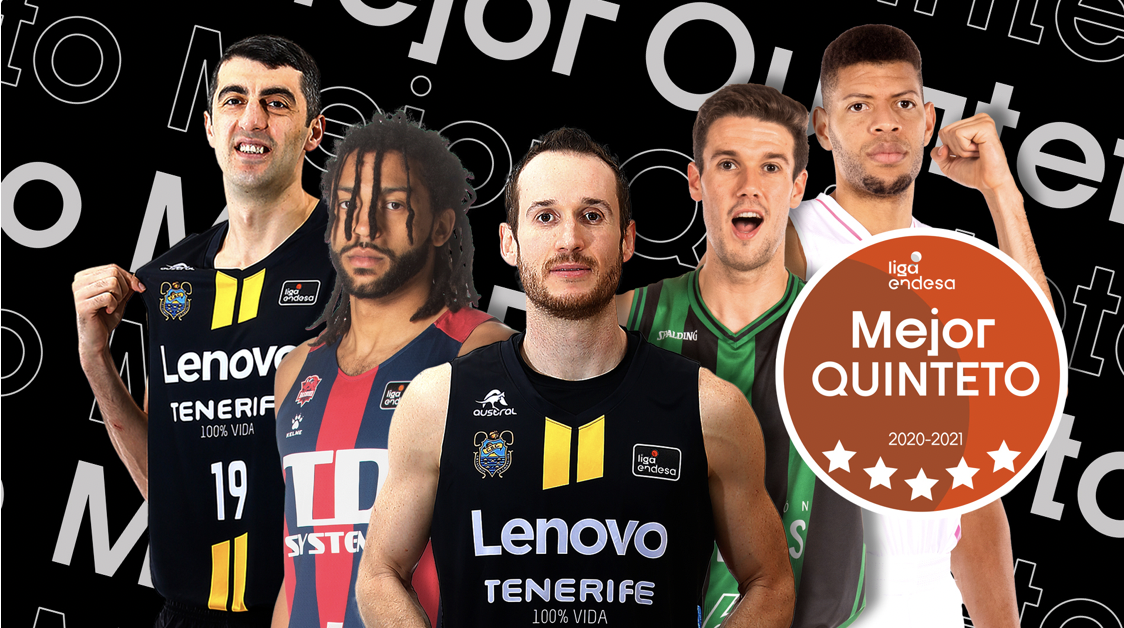 Marcelinho Huertas (Lenovo Tenerife), Pierria Henry (TD Systems Baskonia), Xabi López-Arostegui (Club Joventut Badalona), Giorgi Shermadini (Lenovo Tenerife) y Edy Tavares (Real Madrid) conforman el Mejor Quinteto de la Liga Endesa 2020-21, elegido por afición, medios de comunicación, jugadores y entrenadores