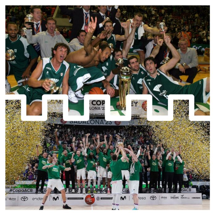 Las dos Copas del Rey del Unicaja en una foto, 2005 y 2023